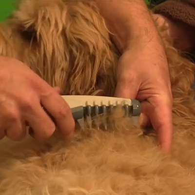 When I got to a tricky area where his fur was especially matted, I pressed the red button